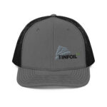 Some hats make a statement. This one makes you look twice. The Ridgeline carries the TINFOIL icon — a shape that reads like a mountain range until it doesn’t. From across the room it’s just a clean logo on a trucker cap. Up close, the word TINFOIL starts to register. Closer still, the .WTF emerges like a frequency only certain people can pick up.