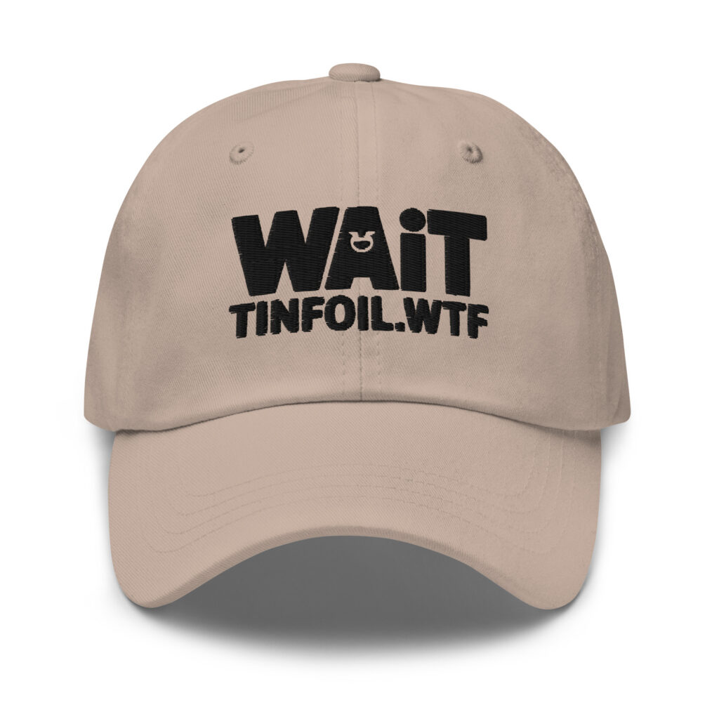 Four letters. One word. The thing your brain says right before everything changes. WAIT is the moment between not knowing and knowing — the half-second where your pattern recognition fires and you haven’t decided yet if you’re right. It’s not a question. It’s not an answer. It’s the space in between, embroidered in black on a hat that looks like it has nothing to hide.
